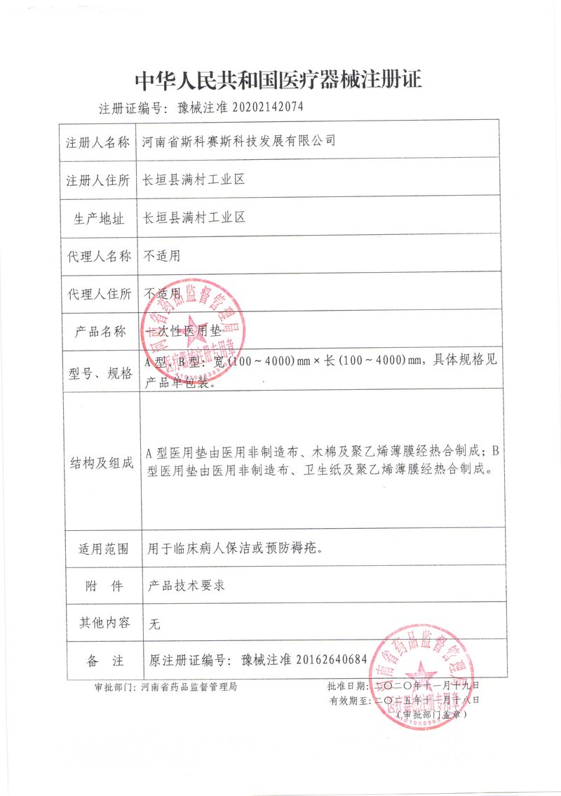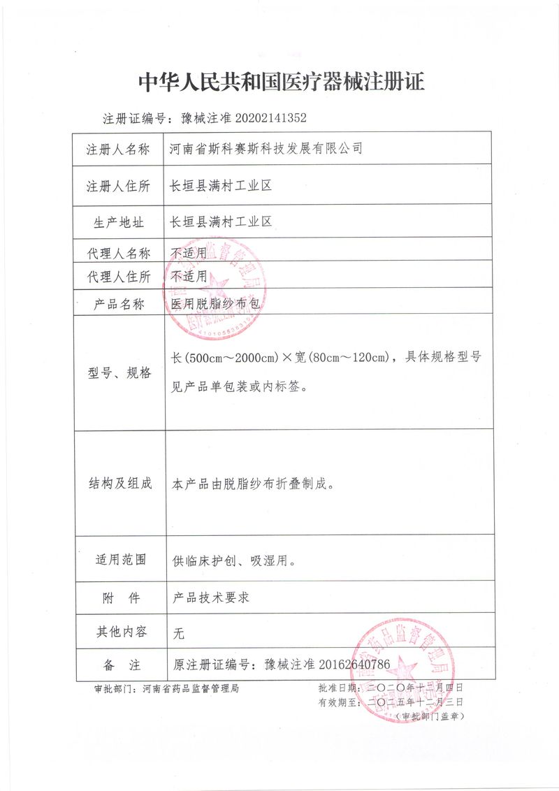 河南省斯科賽斯科技發(fā)展有限公司創(chuàng)建于 2011 年,位于“中國醫(yī)療耗材之都”- 河南省長垣縣,西臨 308 省道,南靠新菏鐵路,北依長濟(jì)高速,交通便捷,經(jīng)濟(jì)發(fā)達(dá),環(huán)境優(yōu)美。斯科賽斯積極進(jìn)入醫(yī)療健康和服務(wù)領(lǐng)域,秉承為用戶創(chuàng)造價值的理念,專注于醫(yī)用耗材解決方案的研發(fā)和運營,并為用戶提供完善的產(chǎn)品解決方案;  斯科賽斯主要生產(chǎn)醫(yī)用麻醉系列、醫(yī)用高分子系列、醫(yī)用敷料包系列、醫(yī)用無紡布系列、醫(yī)用防護(hù)系列、醫(yī)用脫脂棉系列、生物材料制品類等七大類、100 多個品種、400 多個規(guī)格的產(chǎn)品。公司占地面積約 30000 平方米,建筑面積20000 平方米,擁有 10 萬級的凈化車間總面積 10000 平方米。擁有國際先進(jìn)水平的生產(chǎn)設(shè)備和檢測儀器,技術(shù)裝備精良,檢測手段完善,為醫(yī)療行業(yè)的不斷發(fā)展進(jìn)步提供保障。公司順利通過 ISO9001、ISO13485 質(zhì)量管理體系認(rèn)證。  斯科賽斯堅持研發(fā)高科技新產(chǎn)品,力爭在醫(yī)療器械關(guān)鍵領(lǐng)域取得技術(shù)和研發(fā)的重大突破;立足國內(nèi)和國際兩個市場,逐步實現(xiàn)管理理念、經(jīng)營機(jī)制、人力資源、技術(shù)、產(chǎn)品、市場等全方位對接,提高企業(yè)的核心競爭力;過去的歲月里,斯科賽斯砥礪前行,誠信務(wù)實,銳意進(jìn)取,不斷創(chuàng)新,用自己的睿智和辛勞,以富有責(zé)任感的使命,在探索中追求,在追求中超越,致力于成為值得信賴的醫(yī)療用品生產(chǎn)企業(yè)!在未來的日子里,斯科賽斯將一如既往豪情滿懷,信心百倍,攜手并肩,執(zhí)著追求,向更高的的目標(biāo)前進(jìn),鑄造新的輝煌!